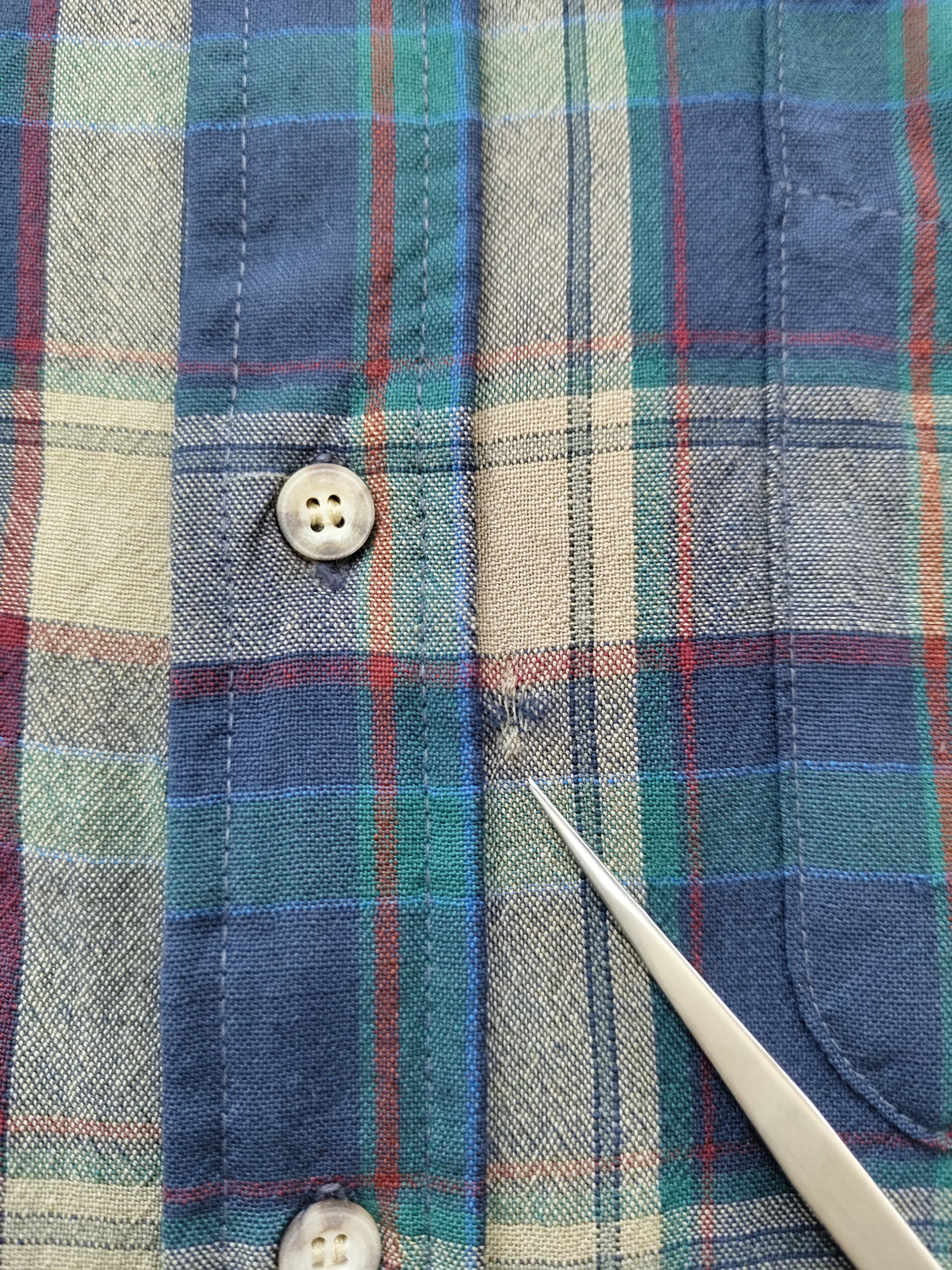 第4ボタン付近、後ろ裾にダメージがございますが、
